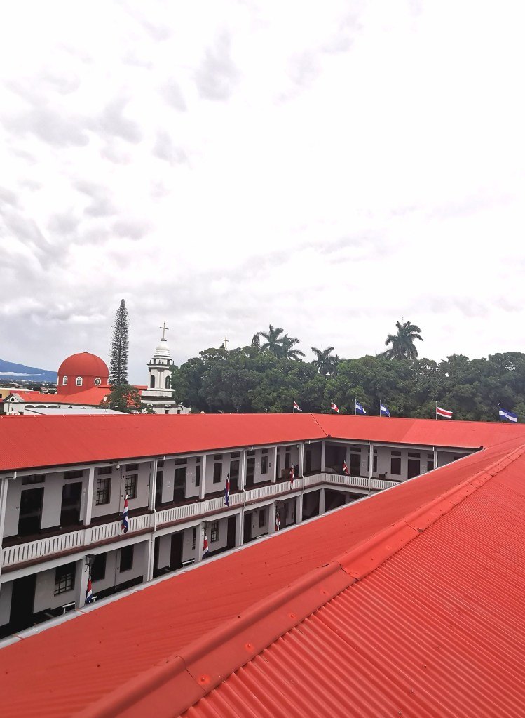 Ce serment ne pouvait pas mieux me convenir, moi qui adore les histoires. Je venais de visiter le musée de la ville (voir la photo ci-dessous prise depuis le toit). Le bâtiment, qui était autrefois une prison, m’avait permis de découvrir l’histoire de Juan Santamaria, le Guillaume Tell costaricien, alors pourquoi ne pas vous parler de ce héros national ?