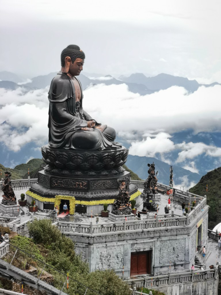 Ainsi je peux admirer le gigantesque Buddha de bronze, une statue de 21,5 mètres de haut inaugurée en 2019 à 3075 mètres d’altitude, qui elle aussi est entrée dans le livre Guiness des records mondiaux.
