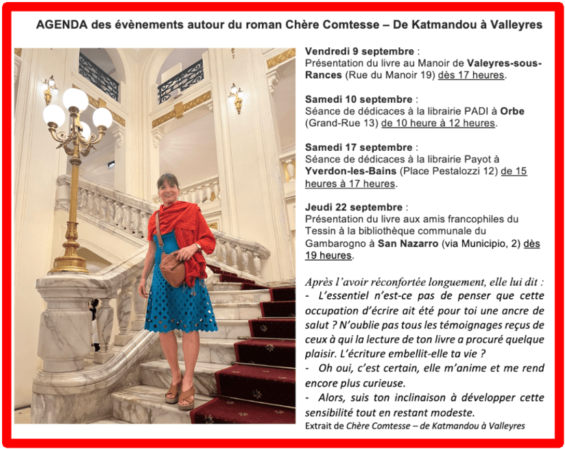 Je n’ai jamais trop aimé attirer la lumière sur moi, je préfère raconter dans l’ombre avec des mots inscrits sur le papier, mais vu l’agenda de ces prochaines semaines autour de cette Chère Comtesse, il va falloir que j’apprenne. Merci d’avance pour votre soutien !