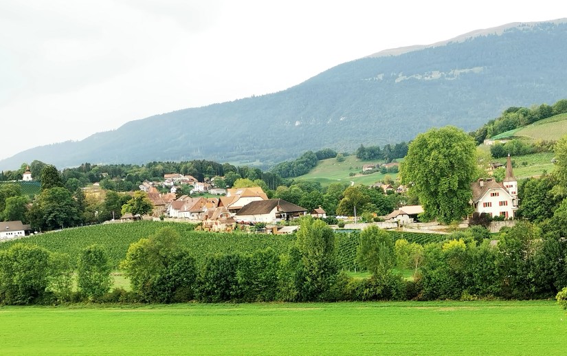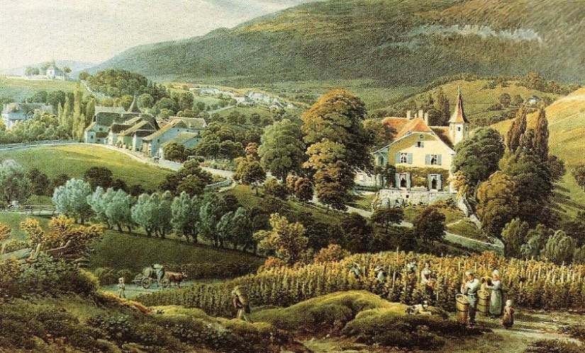Hier j’avais en tête de retrouver le lieu d’où le peintre Gabriel Lory peignit le tableau du manoir où vécut cette Chère Comtesse. S’il y a encore beaucoup de vignes à Valeyres, il n’y en a plus sur la petite colline qui regarde la bâtisse qui existait déjà au XVème siècle.