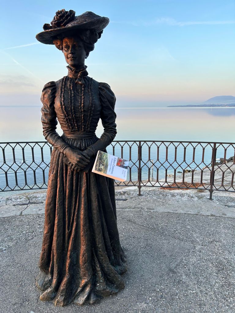 Vivant un peu loin de mes lecteurs pour assurer la promotion de mon roman, j’aime à dire que je laisse cette « Chère Comtesse » voler de ses propres ailes… Et là je ne croyais pas si bien dire ! La voici qui s’envole sur les quais de Neuchâtel sous l’objectif attentif d’une sympathique lectrice. Va savoir, peut-être se précipitait-elle vers cette belle dame, croyant y reconnaître une de ses nobles amies.