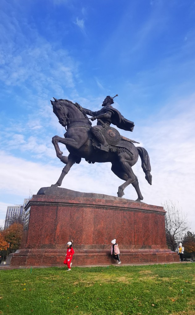 Cette statue d’Amir Temur (1336-1405) est au milieu de la place centrale de la capitale. Il est devenu héros national et symbole du jeune Ouzbékistan au moment de l’indépendance, suite au démantèlement de l’Union soviétique. Ce grand prince considéré comme le père du pays est souvent représenté comme le protecteur des arts et des lettres, de l’éducation et de l’agriculture. Pourtant, l’histoire rappelle peu sa personnalité d’homme sanguinaire, ses conquêtes ayant occasionnés le massacre de milliers de victimes et il était réputé pour ses pyramides de crânes ennemis.