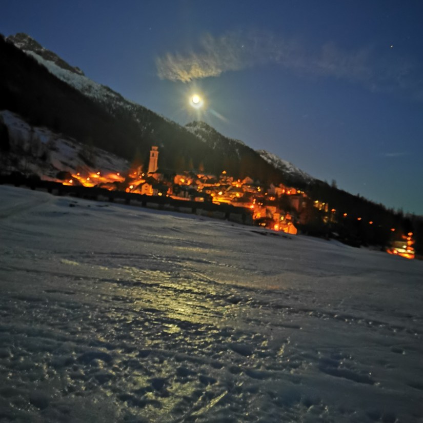 Mon esprit Heidi n’a pas besoin de beaucoup pour retrouver une véritable émotion de plaisir hivernal : une descente en luge au clair de lune dans la tranquille petite station de Bosco Gurin…