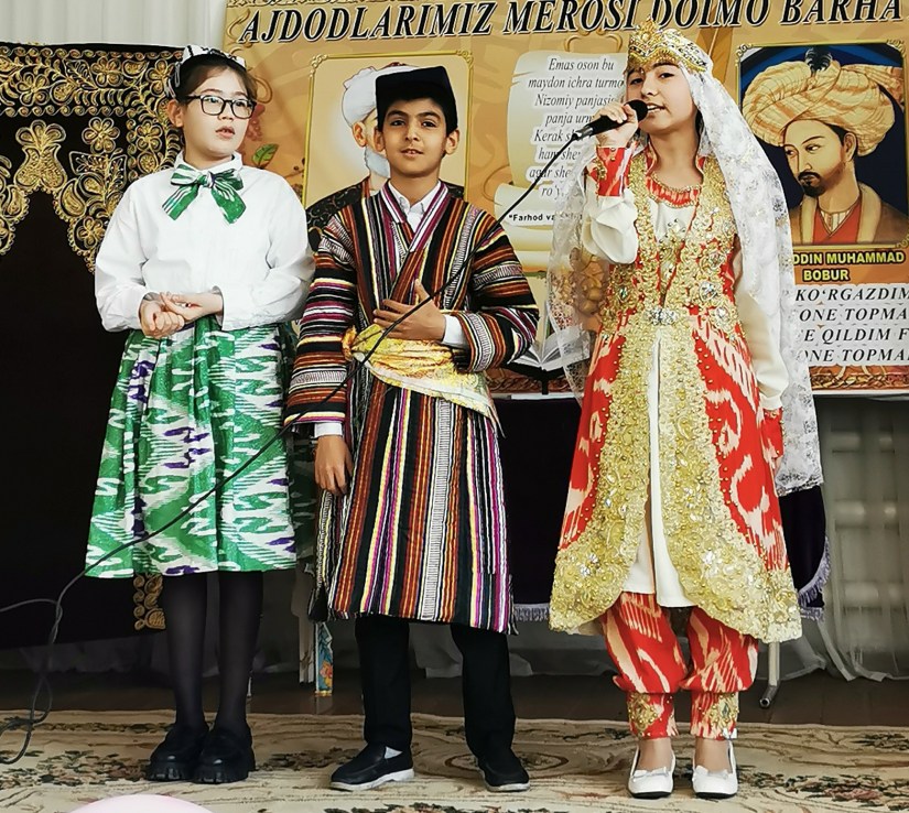 Aujourd’hui, la salle où nous faisons habituellement l’atelier de théâtre était occupée pour un hommage au poète national, Alicher Navoï, né en 1441, qui est aussi reconnu comme le fondateur de la langue ouzbèke.