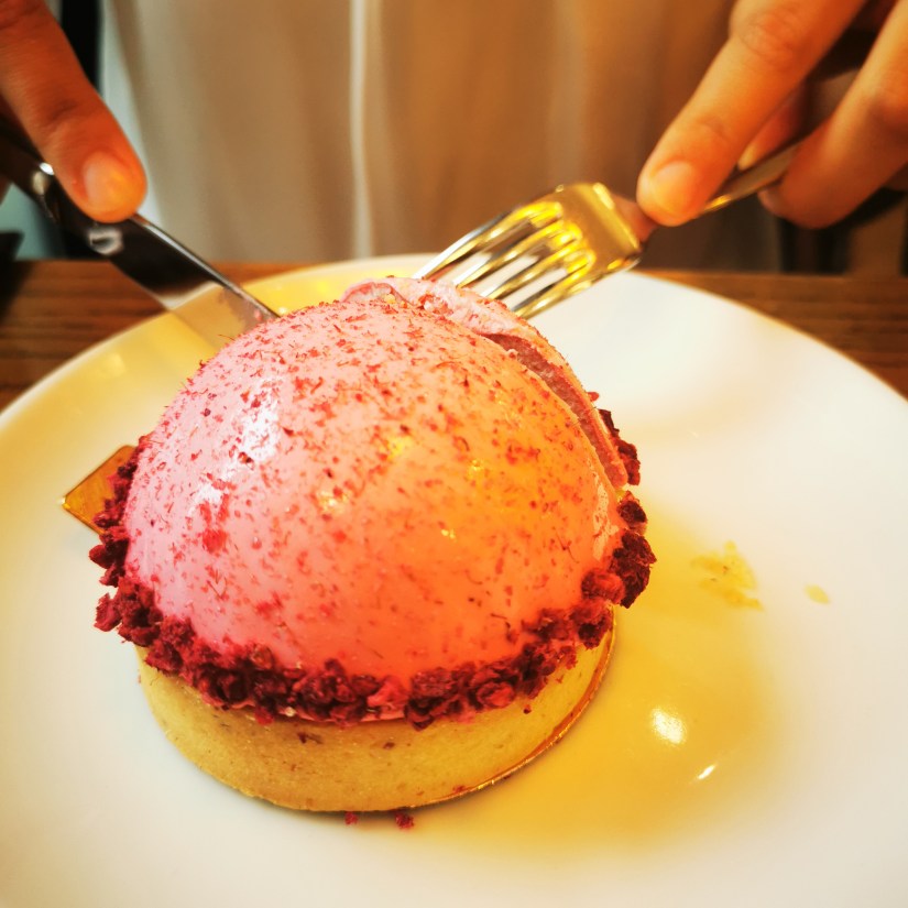 En observant ce délicieux gâteau à la framboise, je me dis que la fin d’une année scolaire a cette saveur, comme une promesse d’insouciance, une coupole d’élégance vers la vie en rose et les joies de l’été…