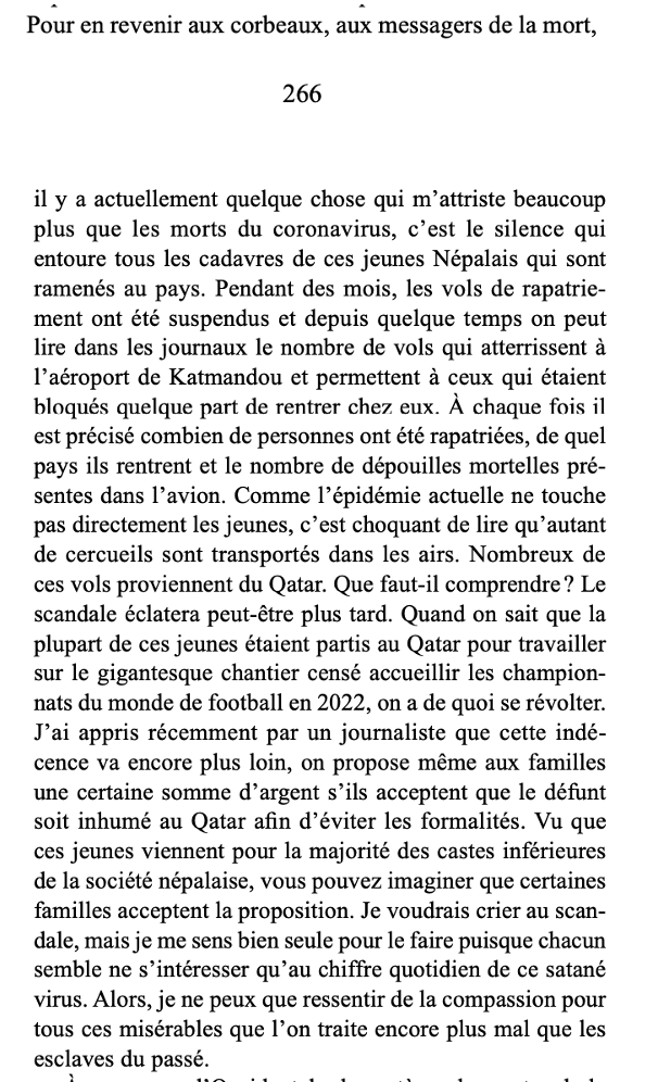 Ces temps, on parle beaucoup du Qatar… Vu que je n’ai jamais regardé un match de foot de ma vie, il ne sert à rien de dire que je boycotterai la manifestation et je ne cherche pas à alimenter la polémique. Par contre, je voudrais que cela génère la compassion du monde entier pour les bâtisseurs des temps modernes qui ont payé de leur vie. Voici pour eux un petit extrait de cette « Chère Comtesse ».