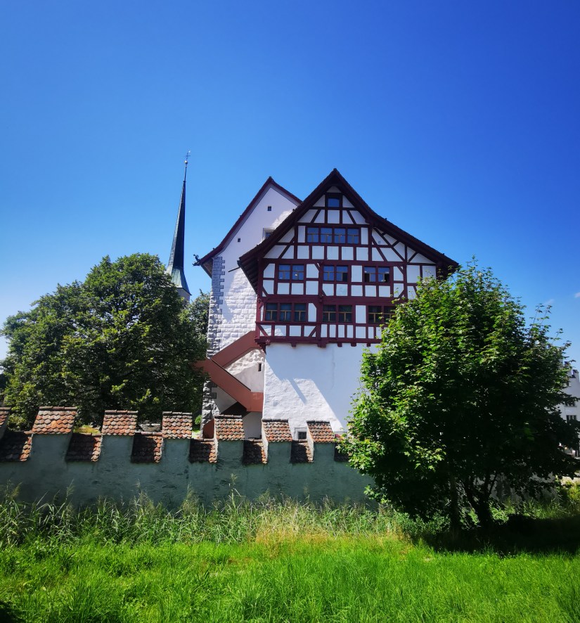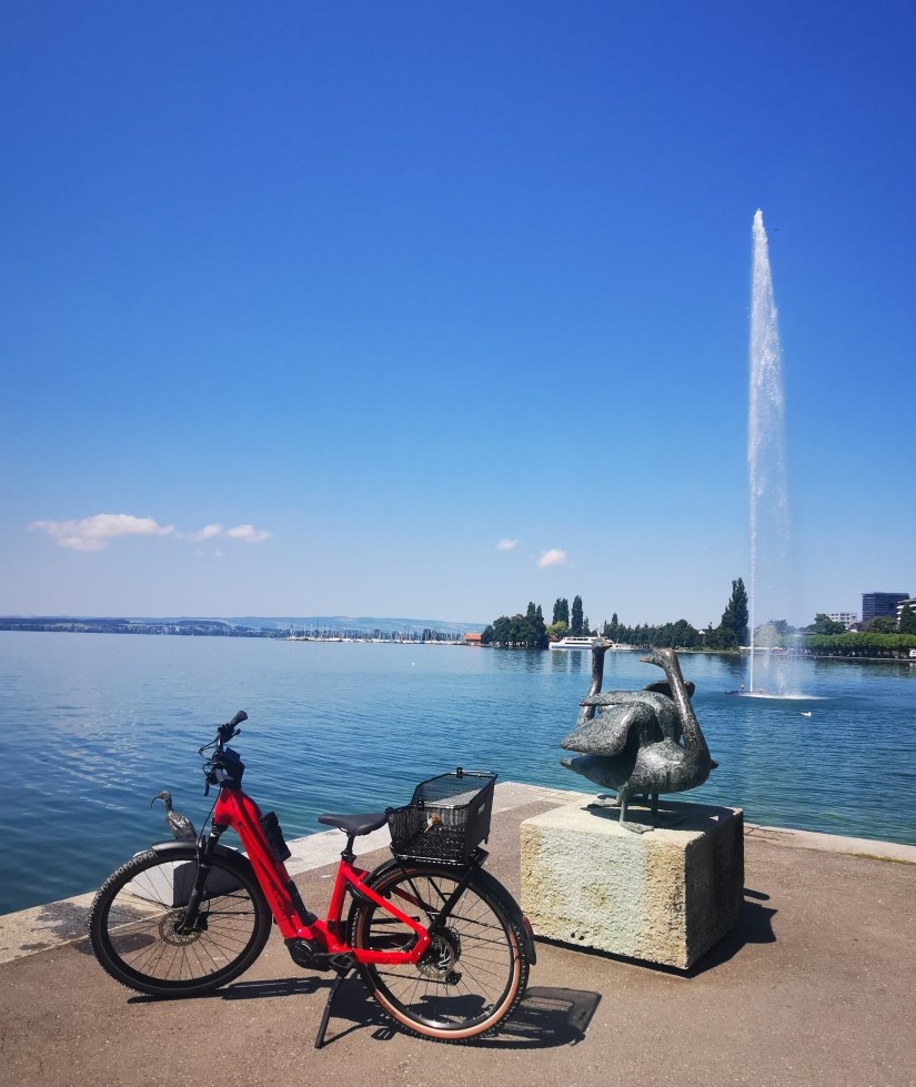 Ma curiosité était trop grande, je n’ai pas résisté à aller voir de l’autre côté. On annonçait 45 kilomètres de Zug à Einsiedeln… mais j’en ai fait pas mal de plus. En effet, je me suis trompée plusieurs fois ou alors, pensant m’être trompée, je suis revenue en arrière pour contrôler les panneaux. Ce n’est certes pas dû au fait d’avoir commencé le parcours dans l’autre sens vu qu’il est piqueté dans les deux sens… Je suis encore une apprentie. En toute logique la consommation de Vély a montré combien j’avais allongé le parcours et il a fallu une longue pause pour l’abreuver. Arrivée devant ma porte, sa batterie était à 2 %… Ouf ! Pour aller plus loin, il faudra que je me décide à utiliser un GPS plus efficace que les indications routières, parce que j’ai vu hier qu’une simple déviation pour travaux réussissait à me dérouter… et mon instinct n’est pas toujours des meilleurs quand je ne connais pas la région. Pas sûr que je trouve toujours une auberge sur le chemin pour nous désoiffer et je n’ai aucune envie de monter les pentes en danseuse. Puisque, sans vouloir offenser Vély, il est vraiment trop lourd sans la magie électrique.